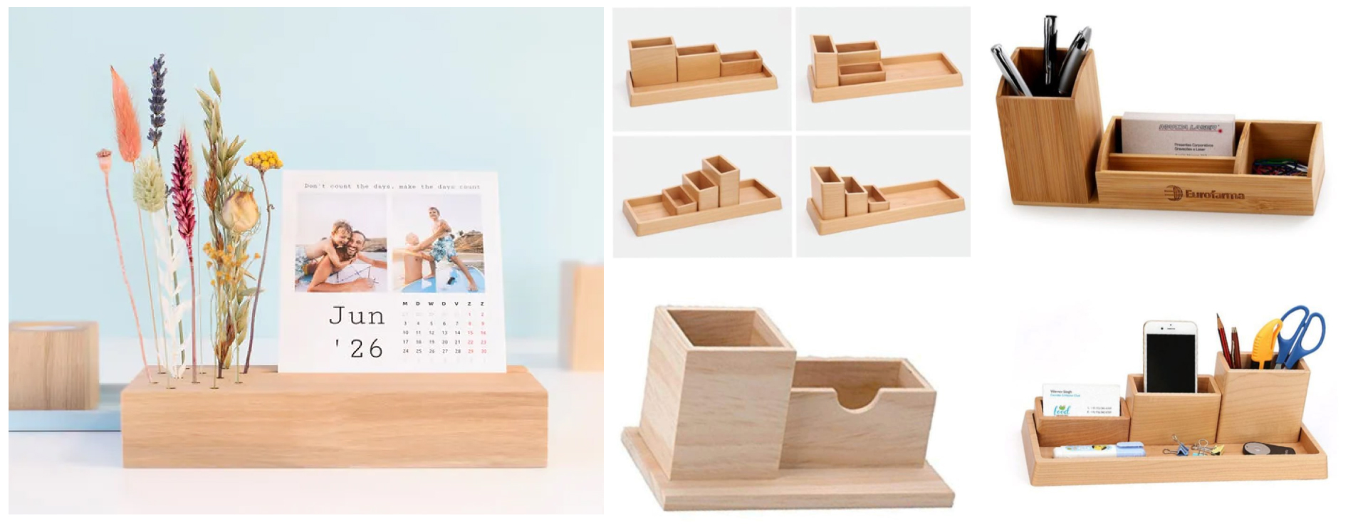 Đế gỗ lịch bàn hình chữ nhật có giá đỡ – Mã DHCM 02